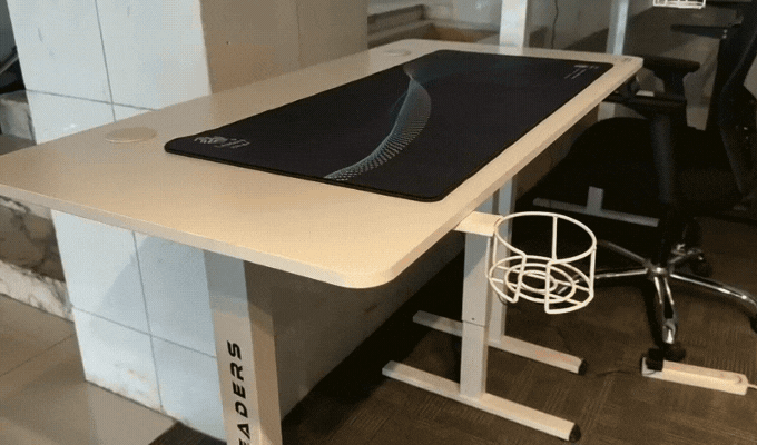 If it can be adjusted, stand in front of the chair and adjust its height, with its highest point just below the kneecap, then adjust the height of the work surface so that your elbows are at a right angle when you sit down and put your hands on the desk