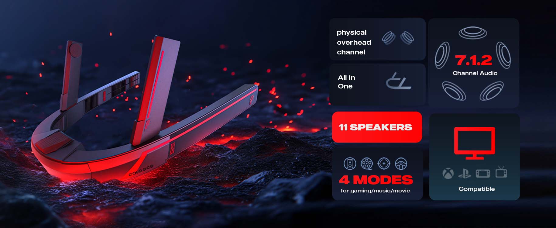 Designed for PC users, the COLO GCS 7.1.2CH Sound System features 11 speakers and 10 Channels (7 channels, 1 subwoofer, 2 overhead speakers) to deliver immersive 360-degree surround sound. Near-field speaker technology and powerful bass ensure perfect sound from any seat. Whether gaming, racing, or watching movies, COLO GCS creates an unparalleled audio experience that puts you at the center of the action.